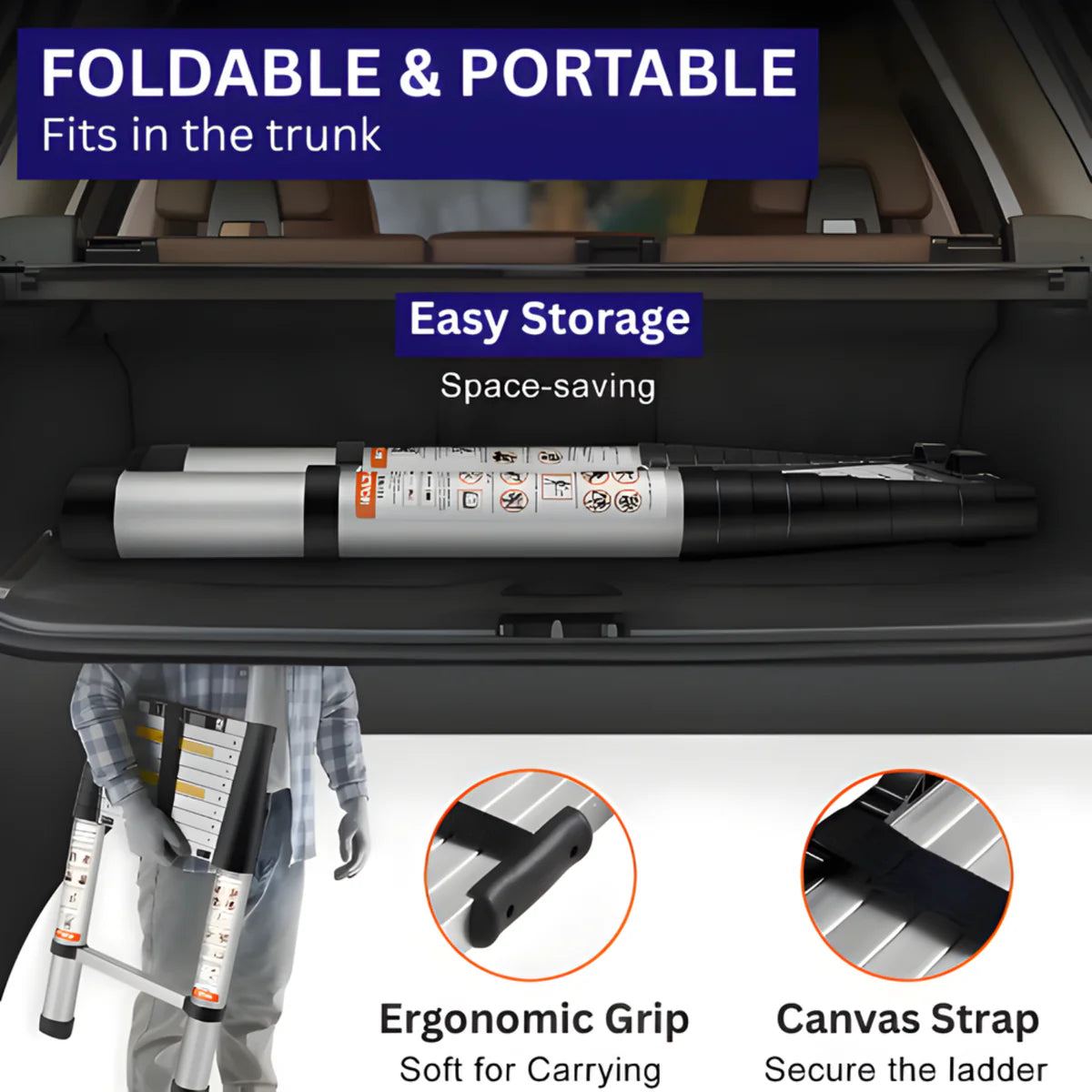 Jest lekka i łatwa do przenoszenia. Dzięki lekkiej konstrukcji także kobiety mogą ją bez problemu nosić. Można ją umieścić niemal wszędzie, w tym pod sofą, za drzwiami lub w bagażniku samochodu. Jest bardziej przenośna i zajmuje mniej miejsca niż tradycyjne, nieporęczne drabiny.